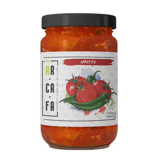 Նկարագրություն Ախորժակը սիրված նախուտեստ է, լոլիկով և կծու պղպեղով։ Այս արտադրանքի անվանումն արդեն իսկ խոսում է իր մասին՝ ախորժակ առաջացնող, համերը խտացնող, և ցանկացած սեղան զարդարող ուտեստ։