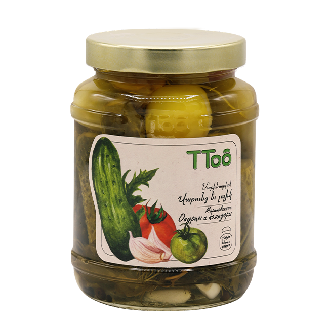 Նկարագրություն Թարմ լոլիկը և խրթխրթան վարունգը մարինացված են աննկարագրելի հյութում, որը համեմված է անուշաբույր համեմունքներով ու լիովին պահպանում է բանջարեղենի բնական համն ու բույրը։ Այս միքսը կարելի է մատուցել մսային և ձկնային ուտեստների հետ, և իհարկե, այն օղու հետ մատուցվող ավանդական «զույգն է»։